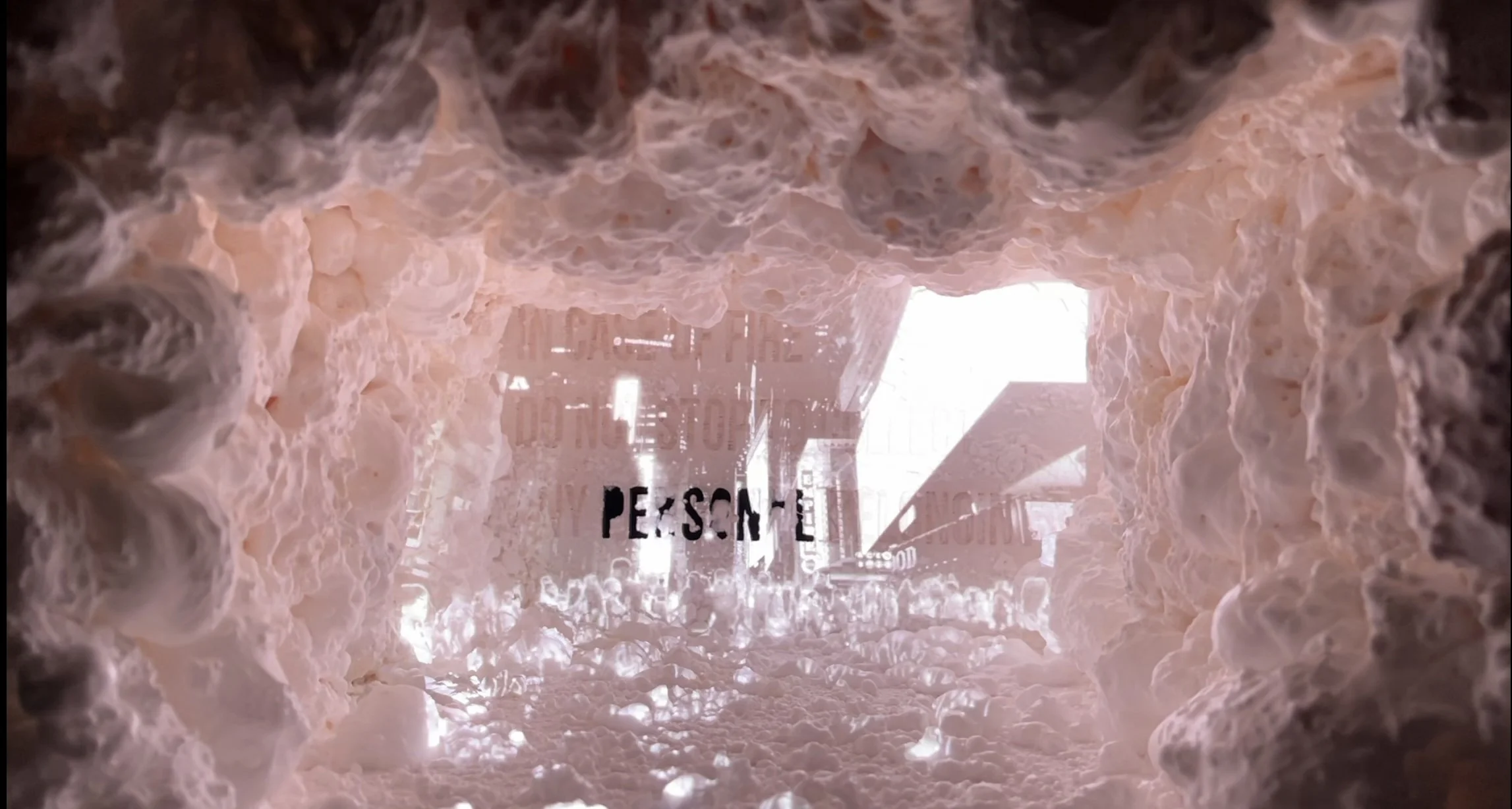 Shell, 2021, video installation, plywood, foam, projector, HD video, 5:42 mins